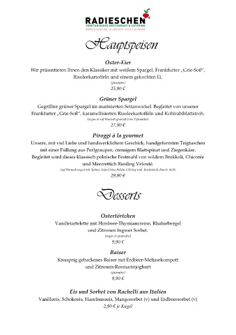 und Meerrettich Riesling Velouté.